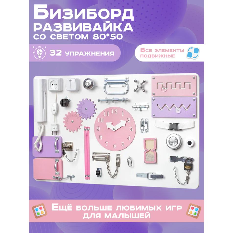Бизиборд односторонний 50х80 см, бело розовый